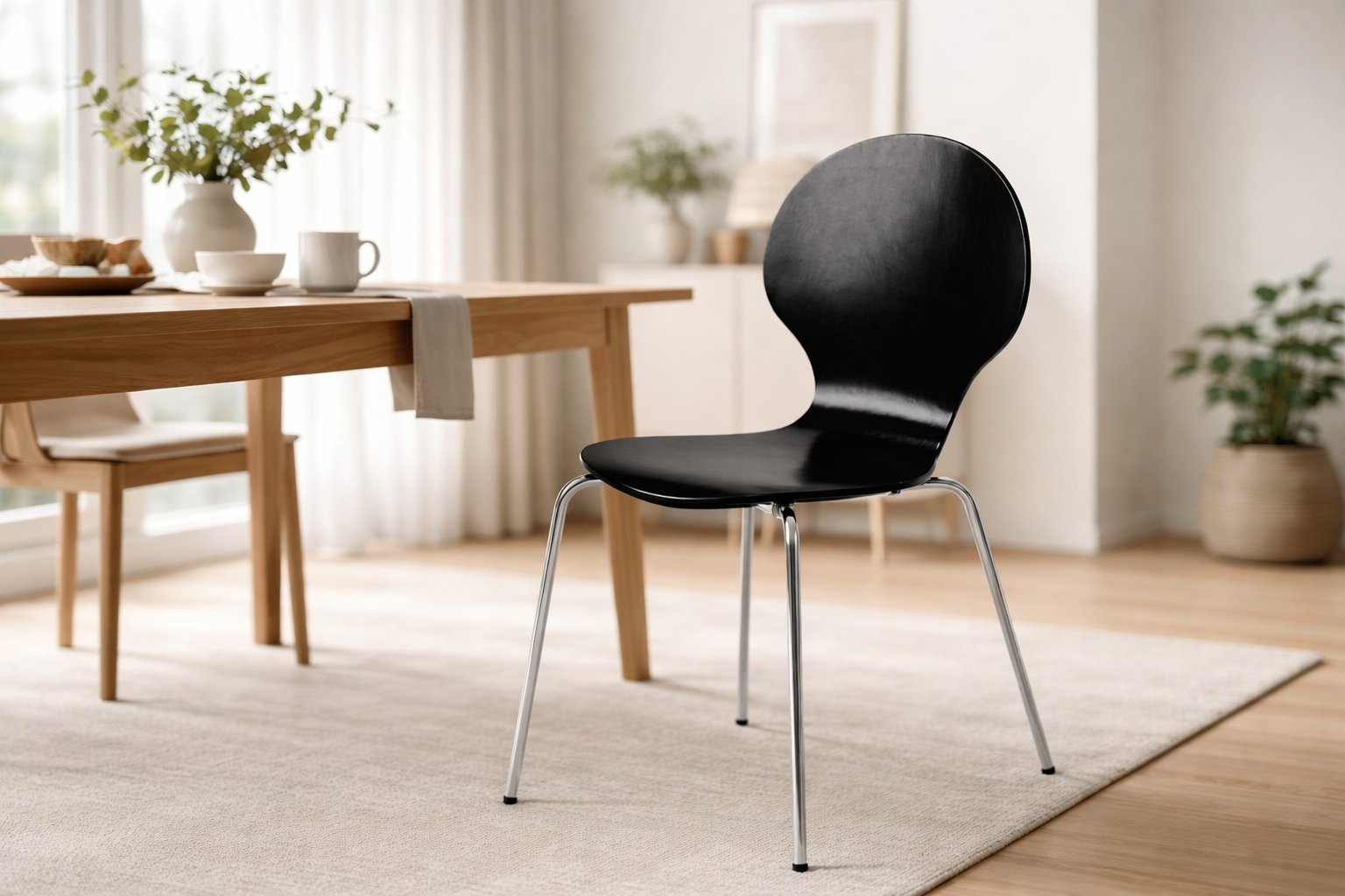 Bis zu vier Stühle stapelbar – ideal für kleine Räume oder spontane Gäste.