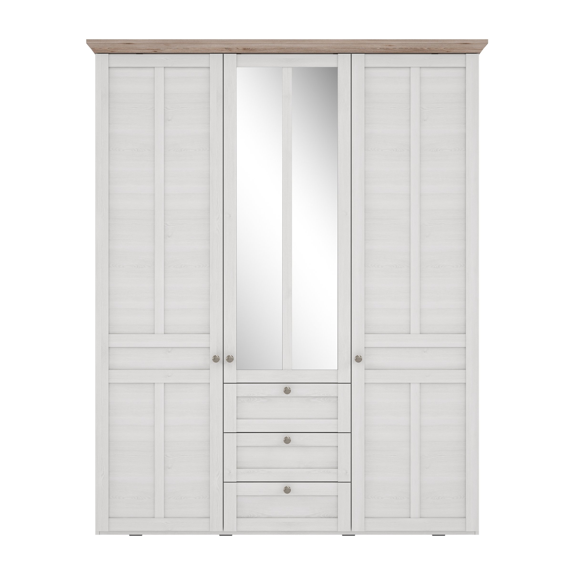 [cKurzbezeichnung] => Stauramvitrine >ILOPPA< 3 Türen, 2 Schübe, Schnee/ Nelson Eiche Dekor - 165x136,1x44,3cm BxHxT