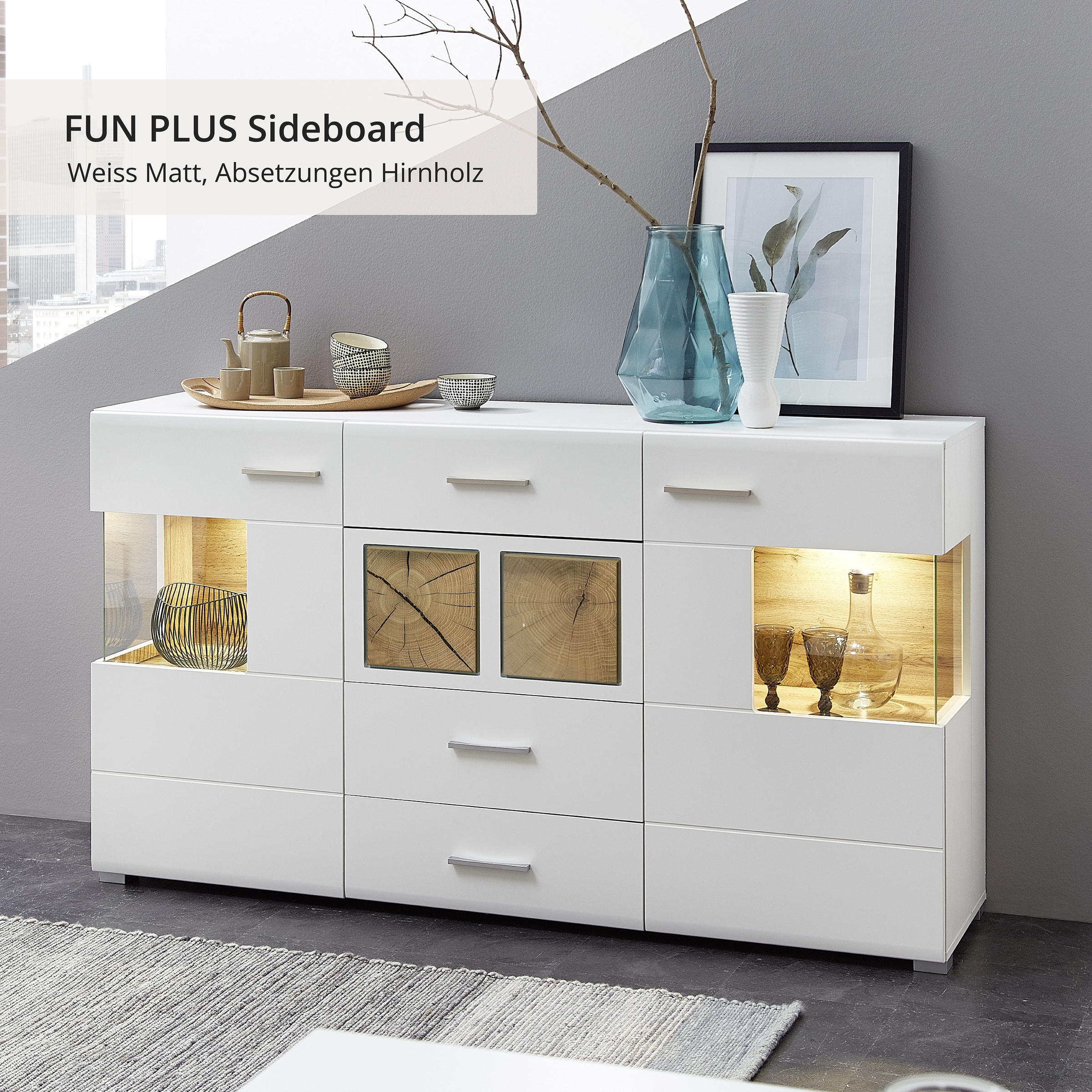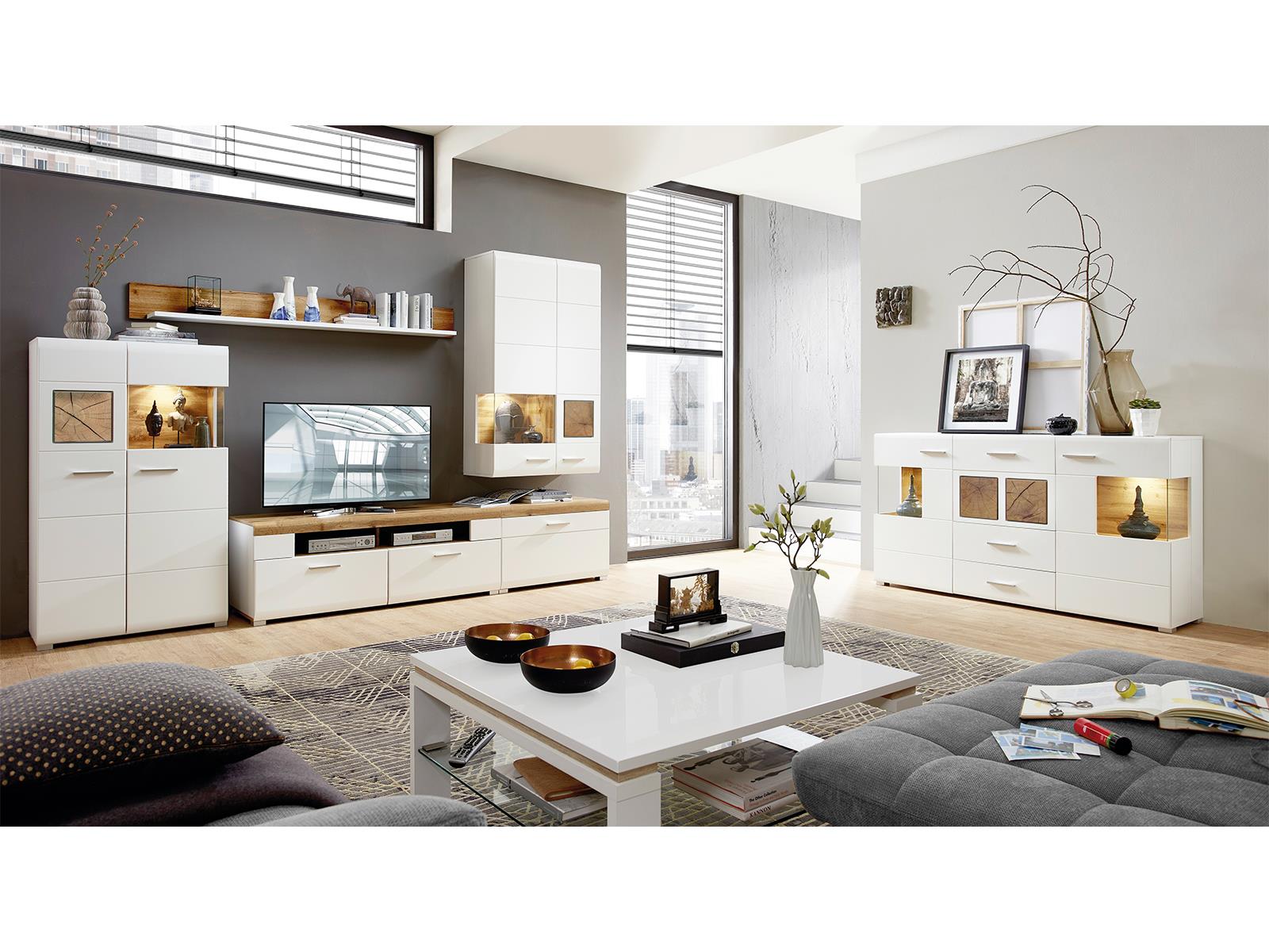 [metaDescription] => Modernes TV-Lowboard in Weiß-Matt, Korpus aus Spanpatte, Front aus MDF, Oberboden in Eiche Altholz Nachbildung mit 2 Schubkästen und 2 offenen Fächern Breit