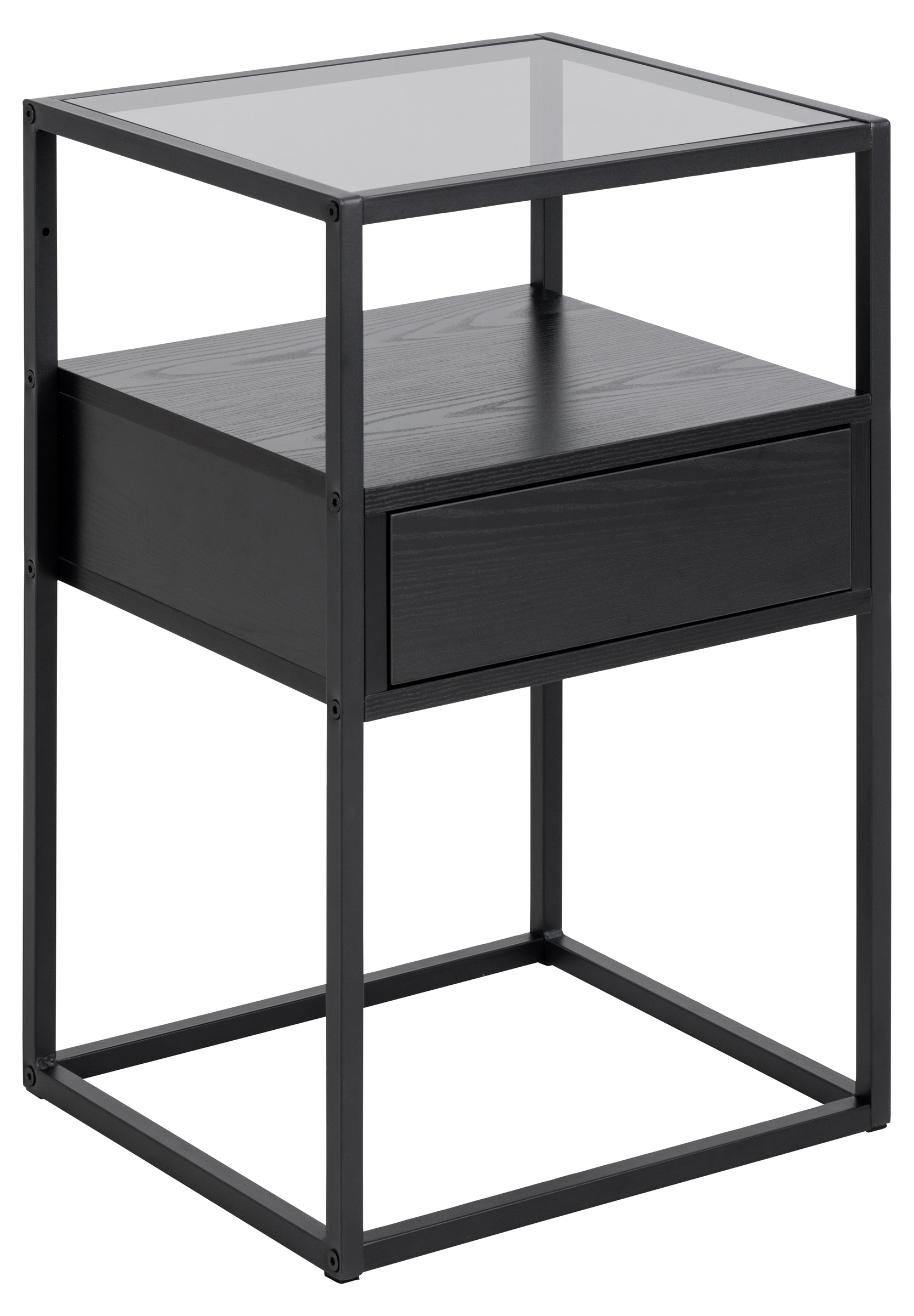 [cKurzbezeichnung] => Nachttisch >Randolf< in Wildeiche; schawrz, Glas, Stahl, MDF - 40x60x35 (BxHxT)