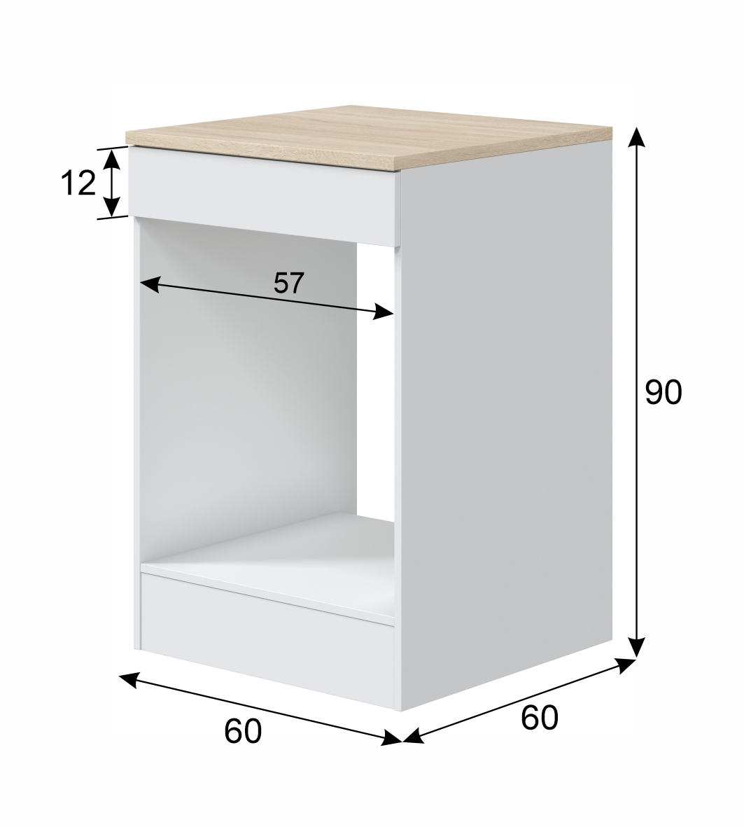 Mit 60/90/60 cm (B/H/T) fügt sich der Unterschrank passgenau in gängige Küchenzeilen ein.