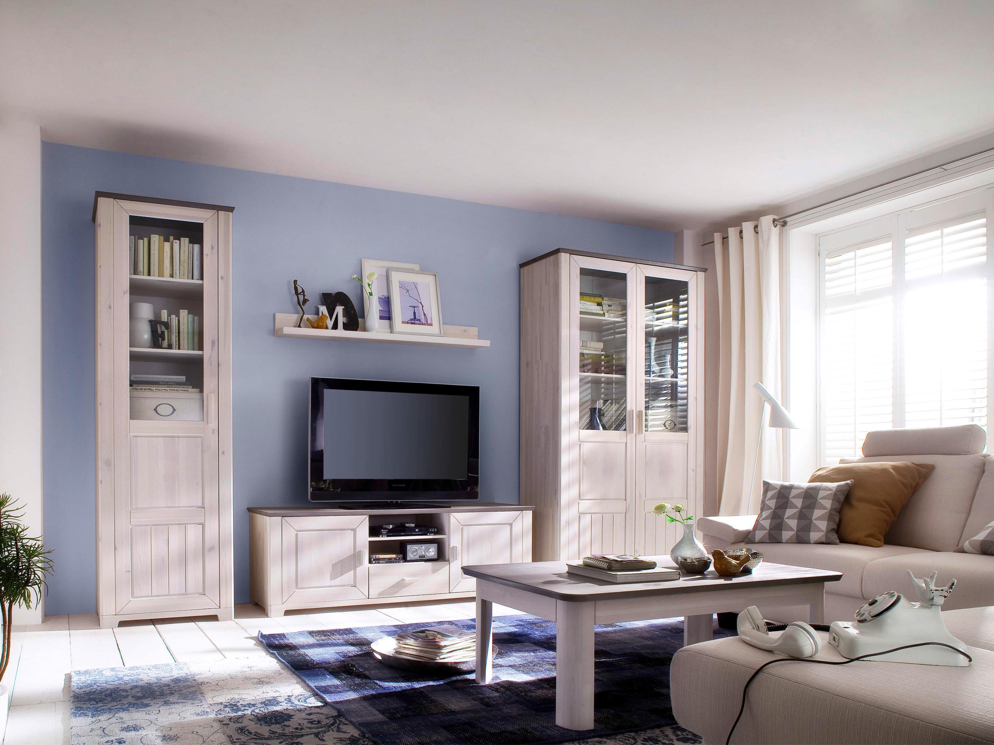 Die Front in Weiß, kombiniert mit einem dezenten Kranz in Lava sowie stilvollen Ausfräsungen, verleiht „Malmö I“ eine moderne Landhausoptik. Hinter 2 Glas-/Holztüren, in 4 offenen Fächern und 4 Schubkästen organisieren Sie Ihren Alltag übersichtlich und haben zugleich Ihre Lieblingsstücke dekorativ im Blick.
