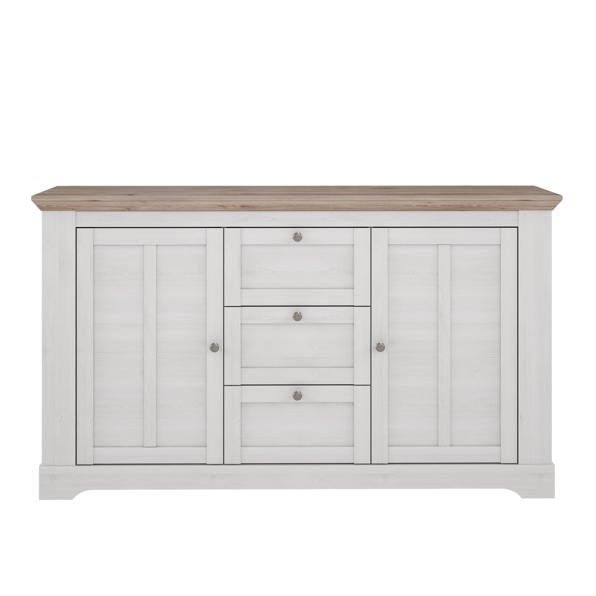 Stabile Spanplatten- und MDF-Elemente, eine lackierte HDF-Rückwand sowie 3 verstellbare Einlegeböden sorgen für langlebige Qualität und flexible Einteilung. Praktische Details wie die Metallgriffe in Nickel gebürstet, die grauen Kunststofffüße und der zerlegte Lieferzustand für einen leichteren Transport runden das Gesamtpaket ab.