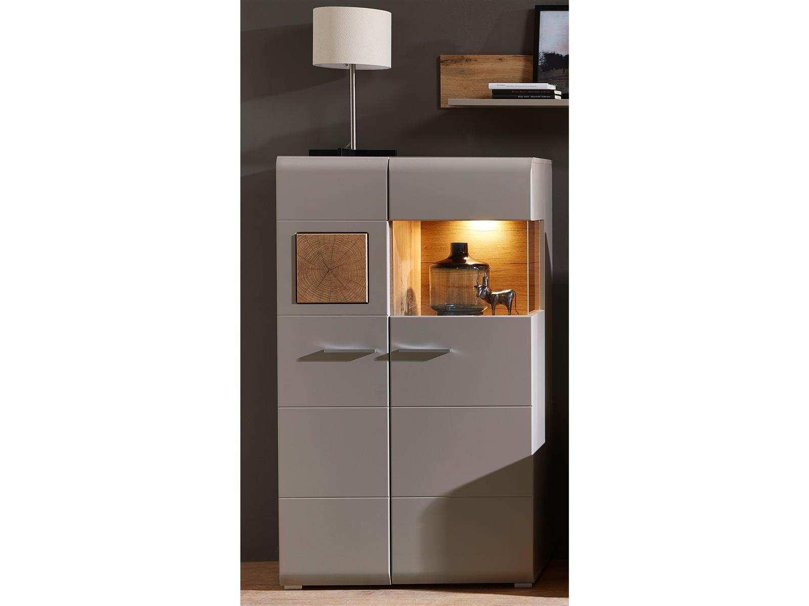 ✔Die integrierte LED-Schrankbeleuchtung in warmweiß bringt Gläser und Deko stimmungsvoll zur Geltung.