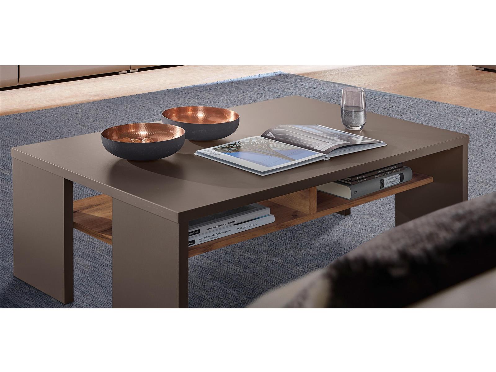 Basalt mit Hirnholz- und Eiche-Altholz-Nachbildung fügt sich harmonisch in moderne Wohn- und Essbereiche ein.