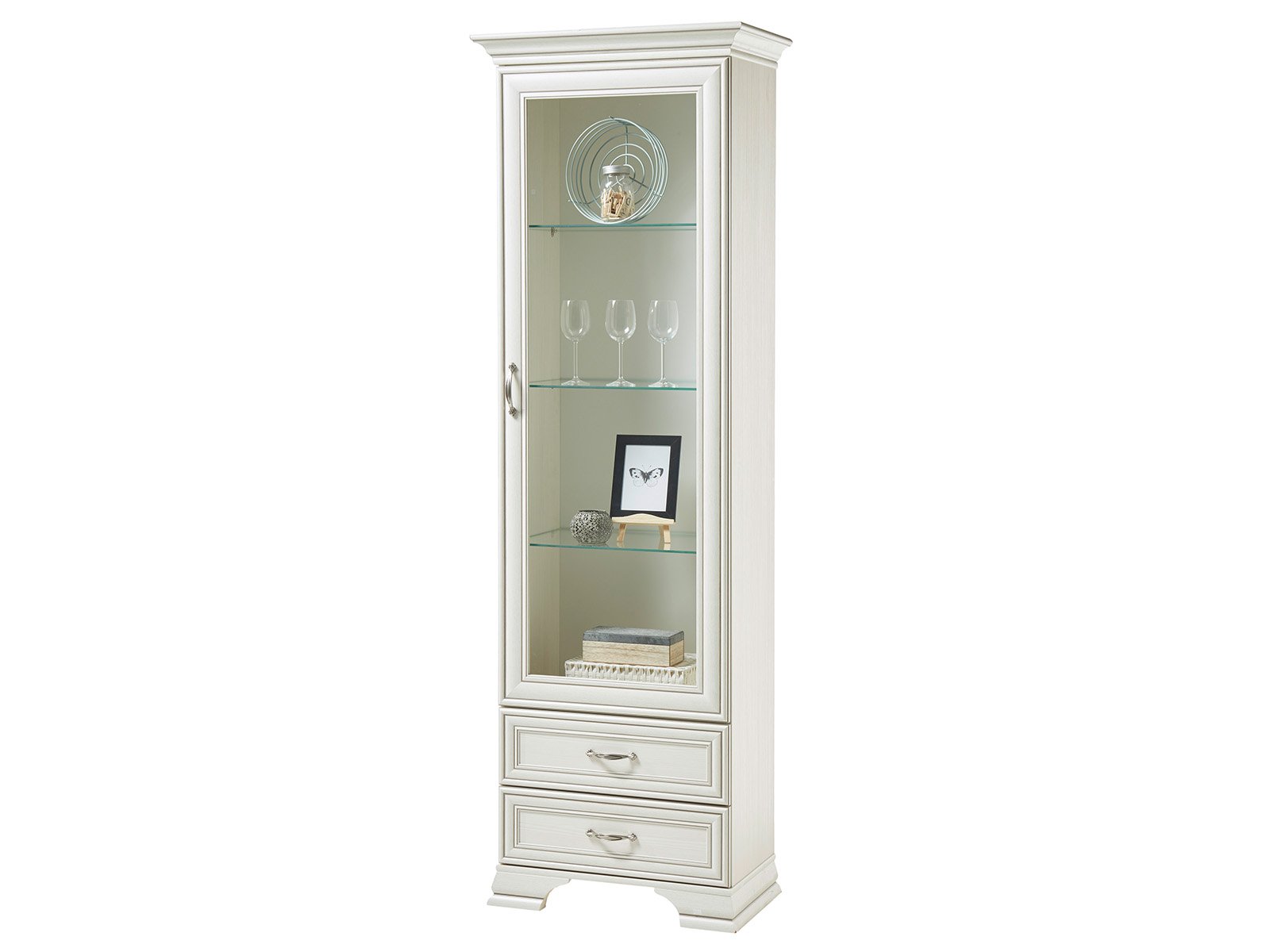 Vitrine "Valeria I" – Landhaus-Vitrine mit Glas-Holztür und Schubkästen