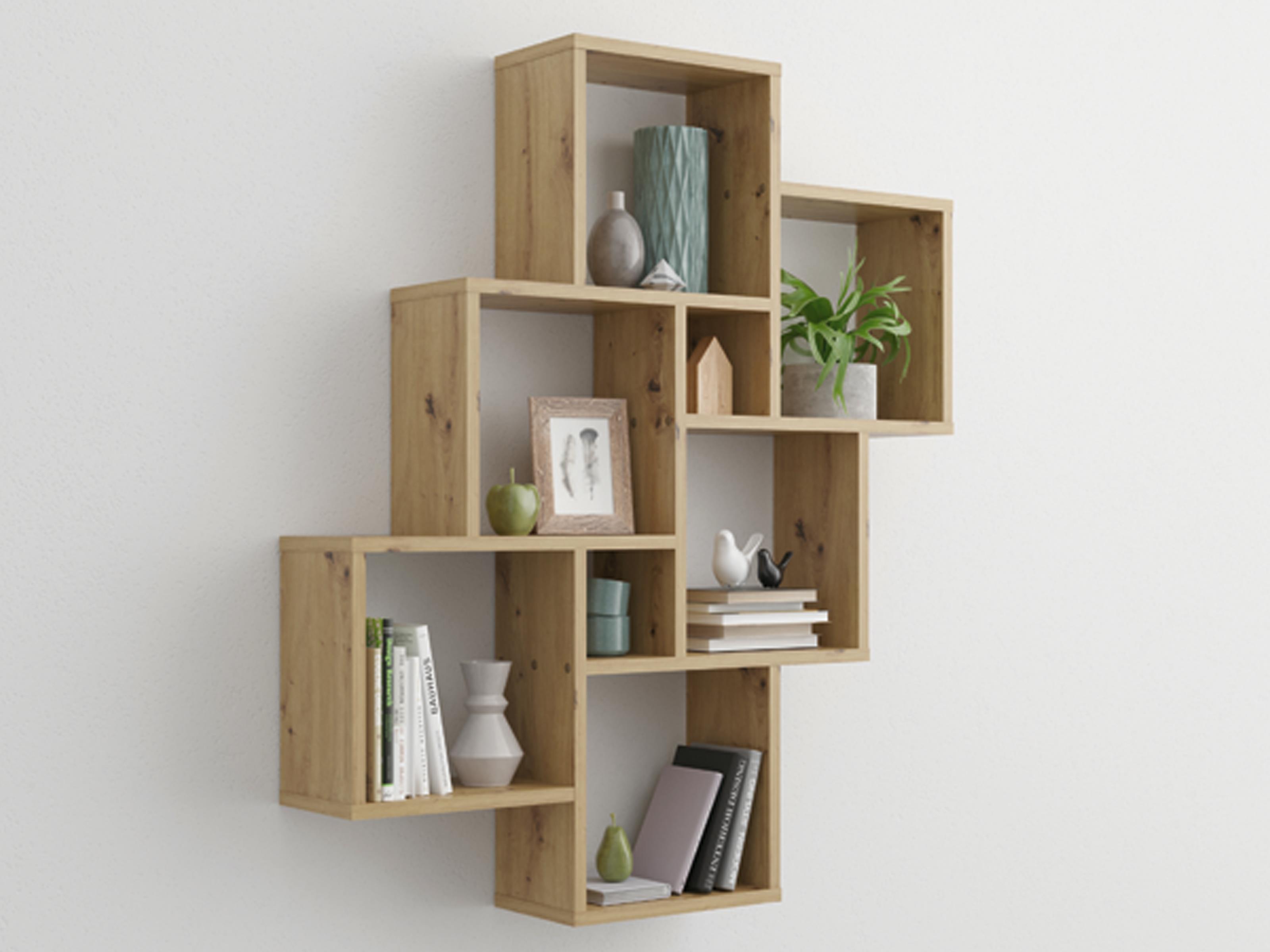 Die Ausführung in Artisan Eiche Nachbildung fügt sich dezent in moderne Wohnstile ein und wertet das Umfeld optisch auf. Mit 6 großen und 2 kleinen offenen Fächern lassen sich Sammlungen und Dekoobjekte strukturiert anordnen und gekonnt in Szene setzen.