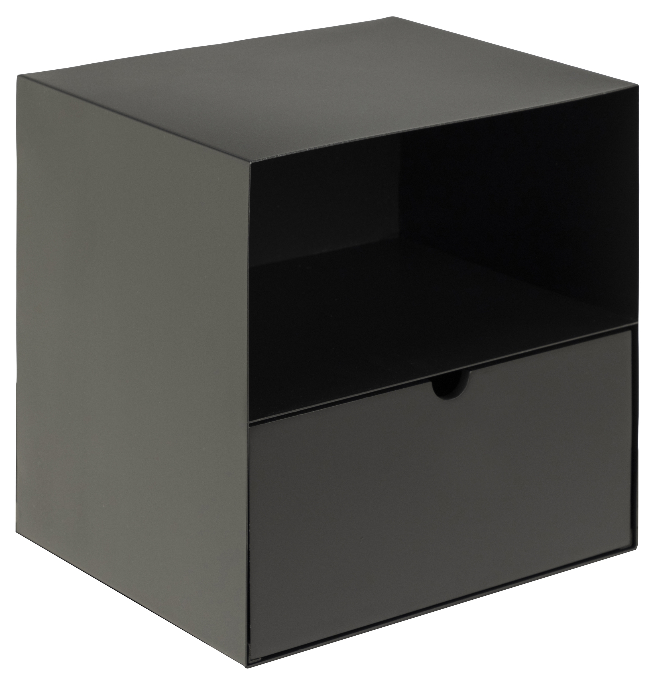 ✔Mattschwarzer Stahl in Korpus und Böden sorgt für einen modernen, klaren Look.