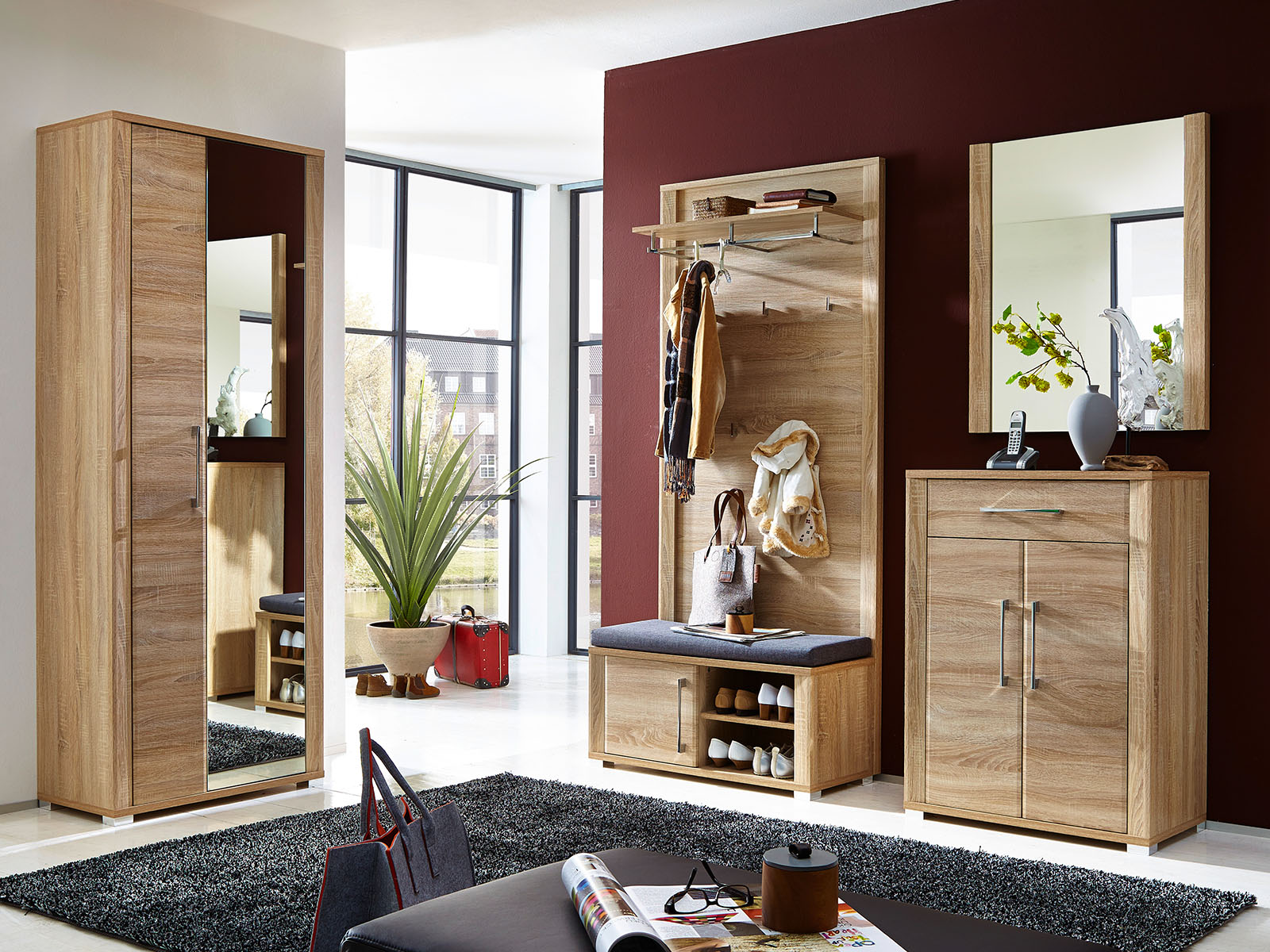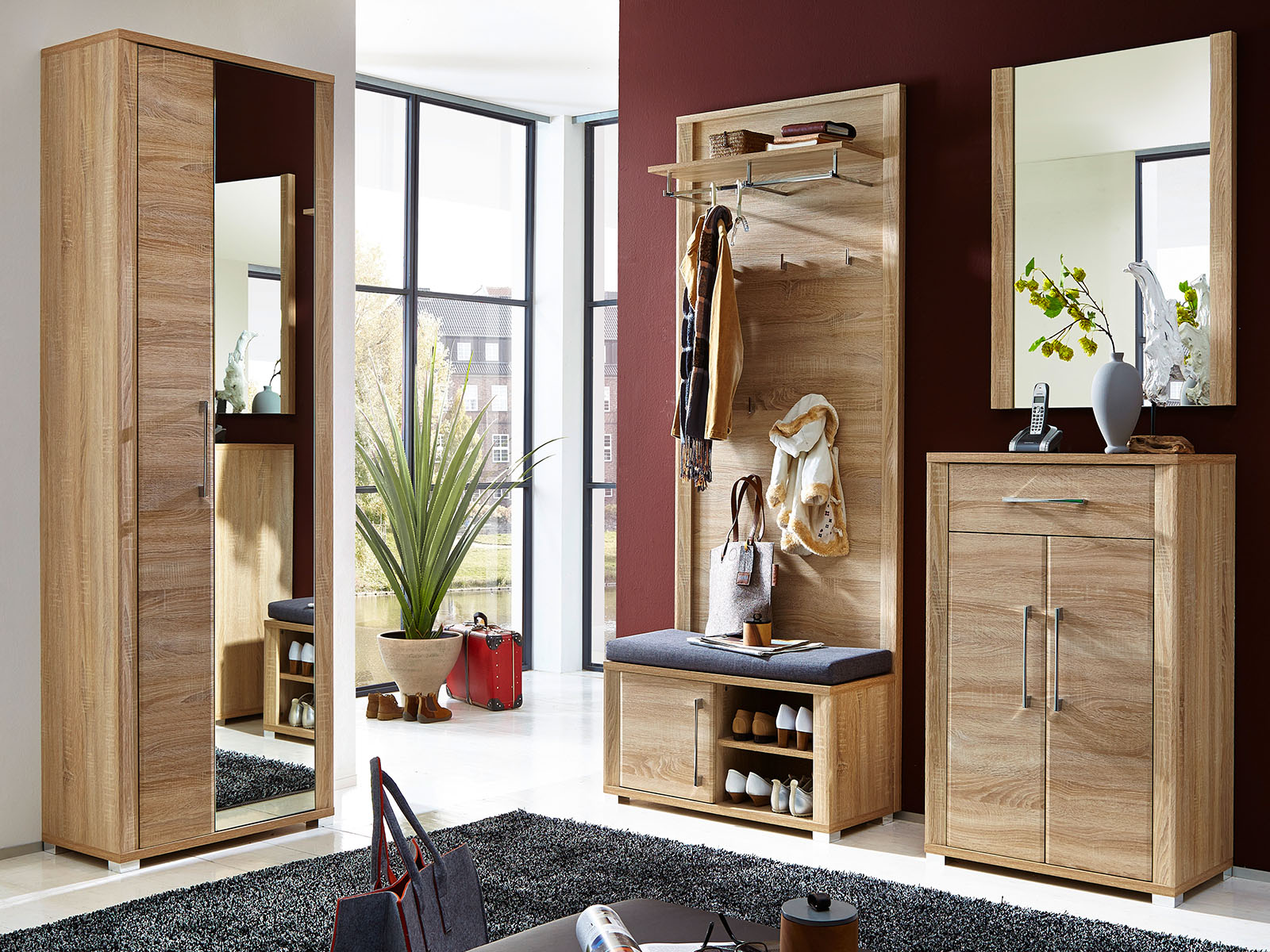 [metaDescription] => Moderner Garderobenschrank re/li montierbar, Front aus MDF in Sonoma-Eiche hell, Korpus aus Spanplatte in Sonoma-Eiche hell Nachbildung mit 1 Spiegeltür,1 H