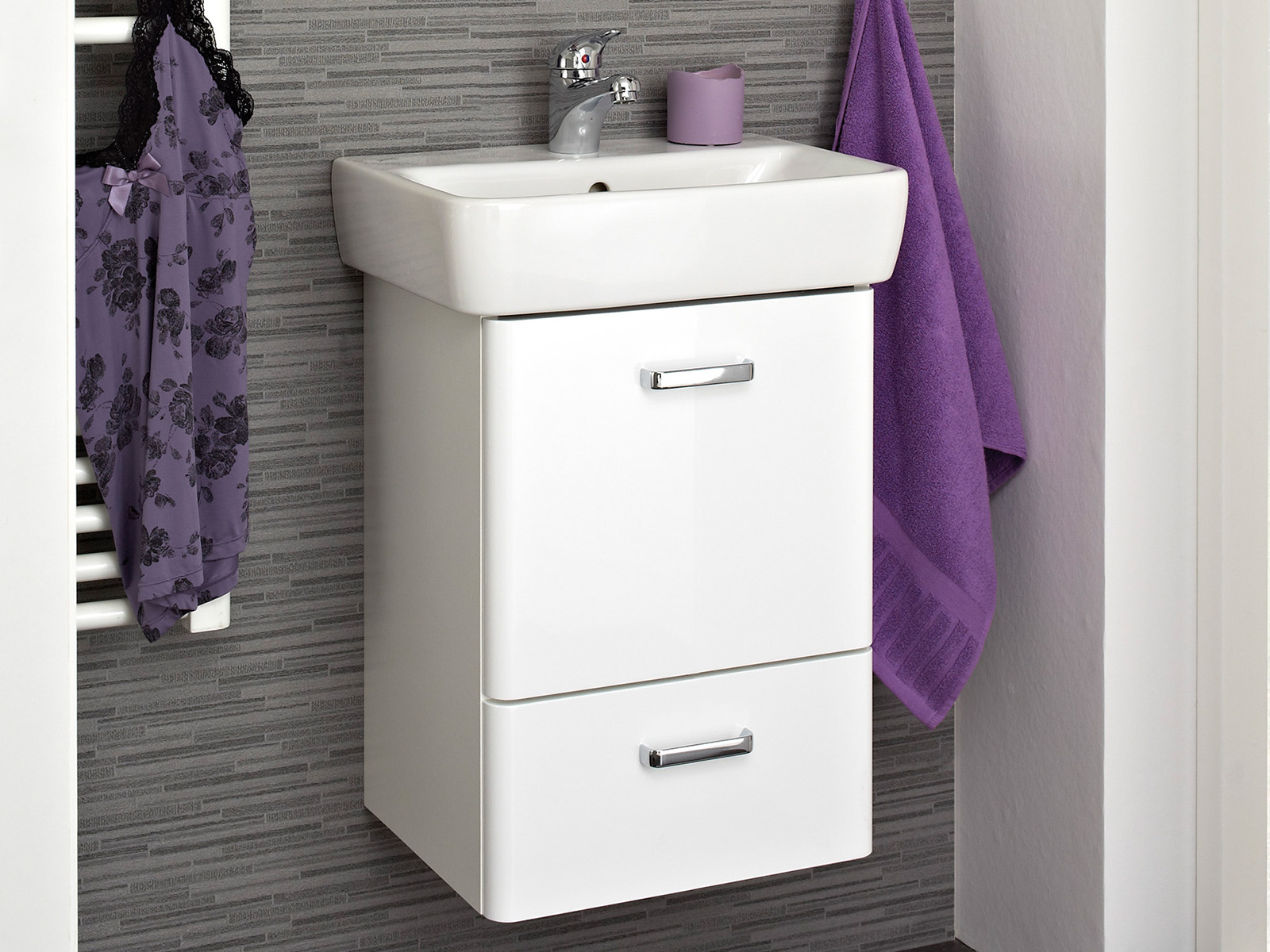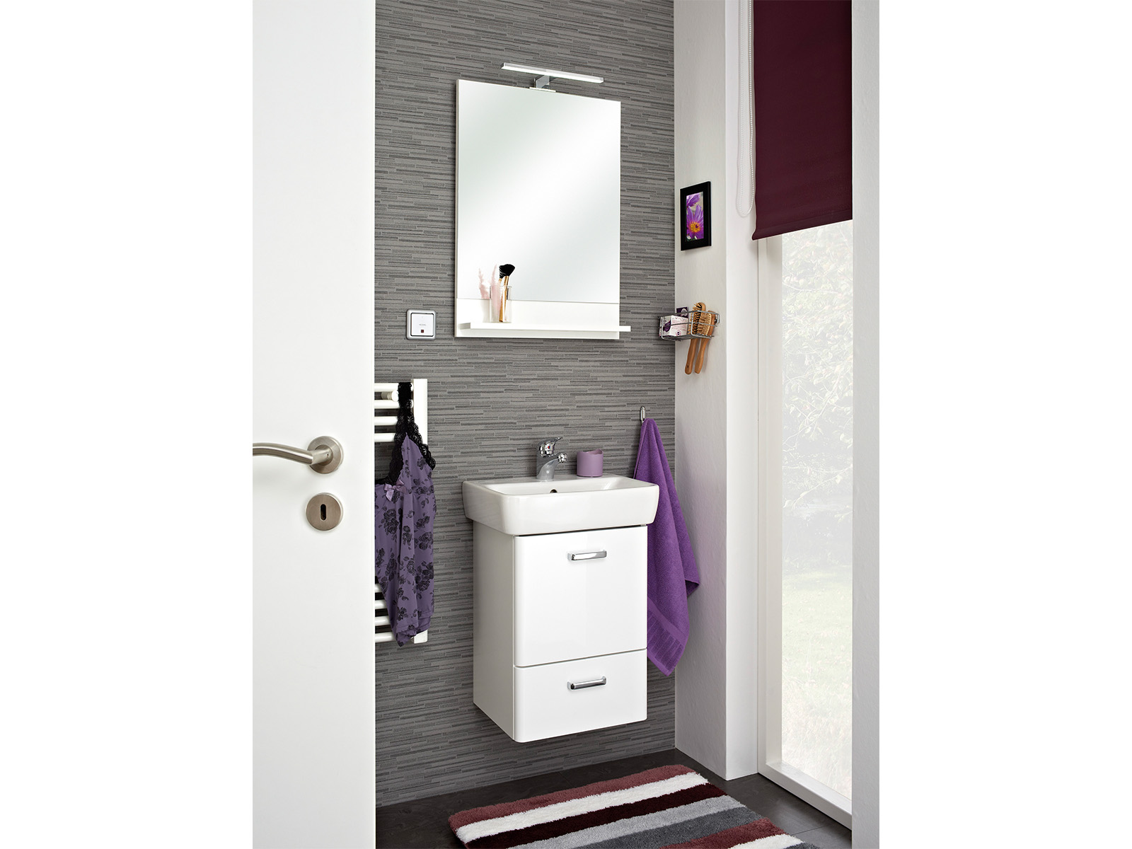 [metaDescription] => Moderner Waschtisch in 3 verschiedenen Größen erhältlich, Front aus mitteldichter Holzfaserplatte (MDF) in Weiß-Hochglanz, Korpus aus melaminharzbeschichtet