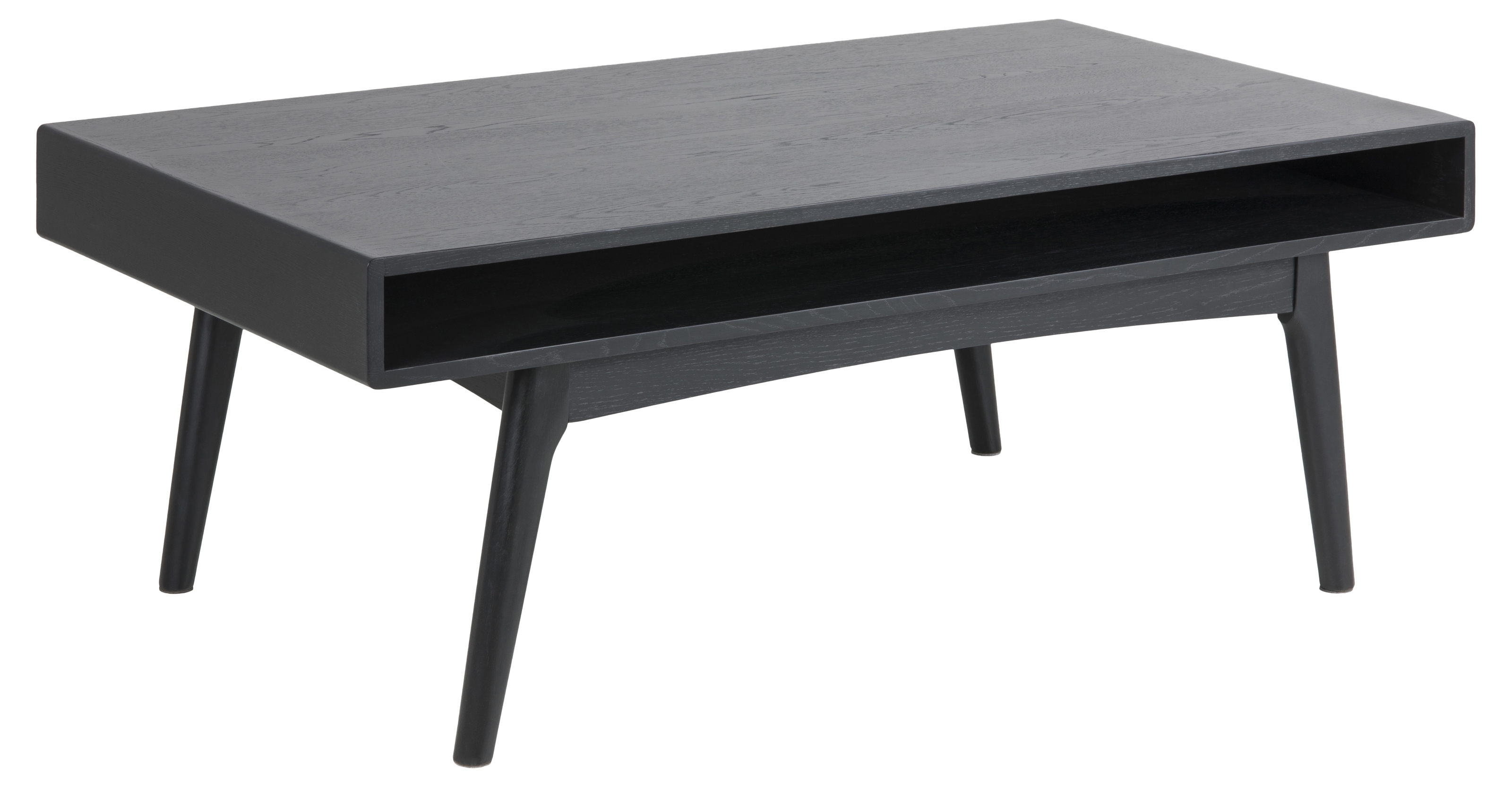 [Bullet-Point 3] => Stabiles Gestell aus Eichenholz in mattem Schwarz, NC-lackiert, mit vier robusten Beinen, die für eine zuverlässige Basis und Stabilität sorgen, passend für moderne Wohnzimmer.
