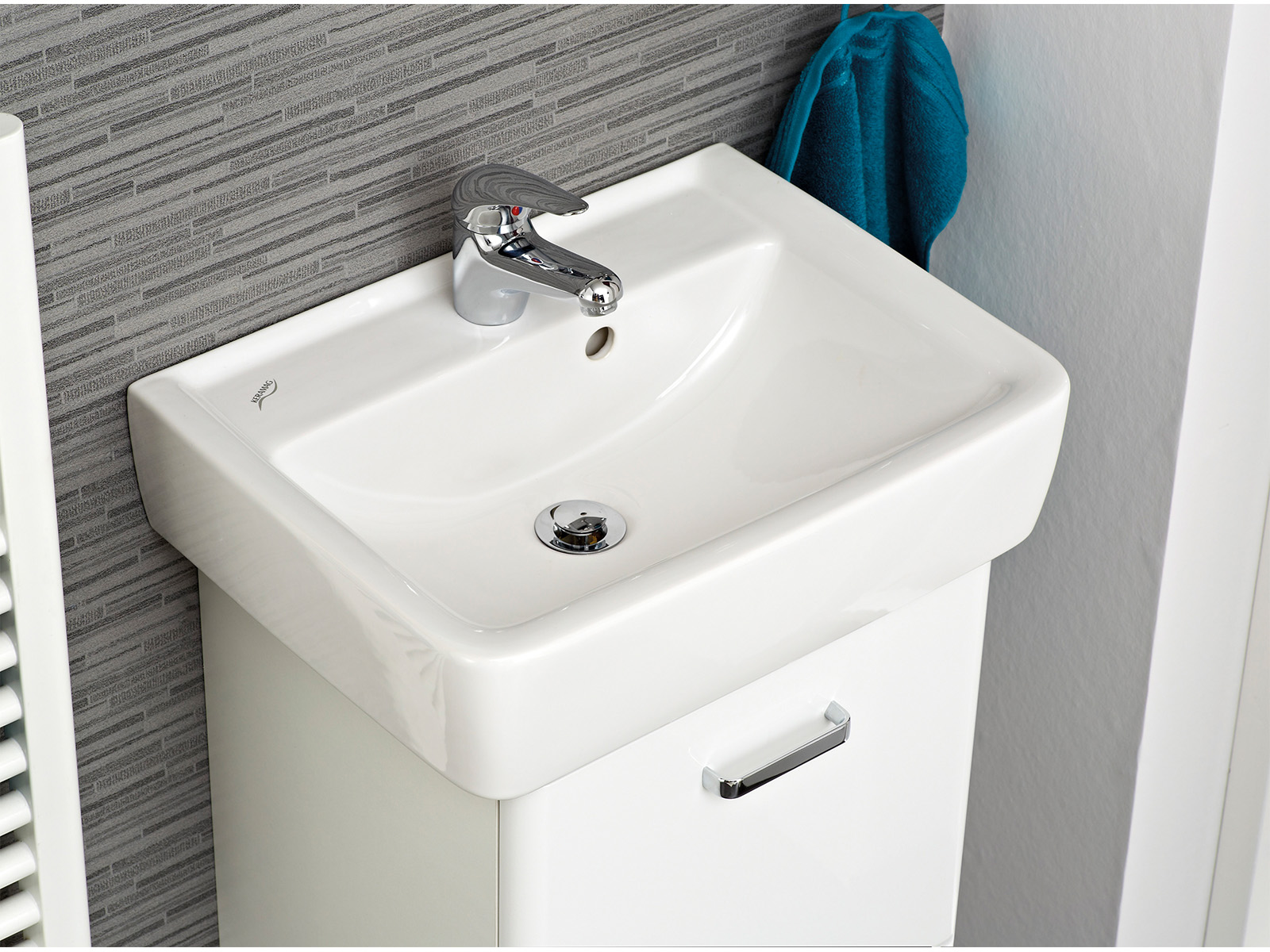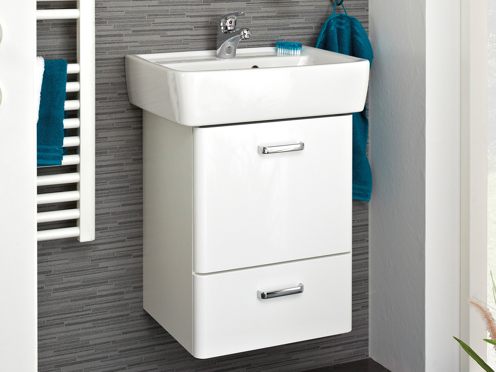 Angenehm platzsparende Abmessungen bieten dir einen vollständigen Waschplatz auch in kleineren Bädern.