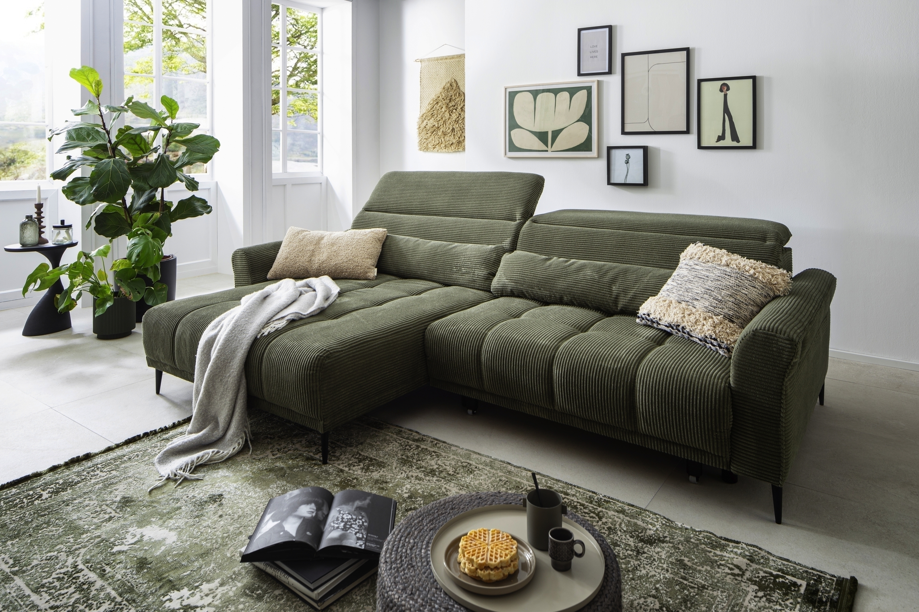 Wohnlandschaft Wolve – Wohnlandschaft mit verstellbaren Kopfstützen und weichem Cordbezug