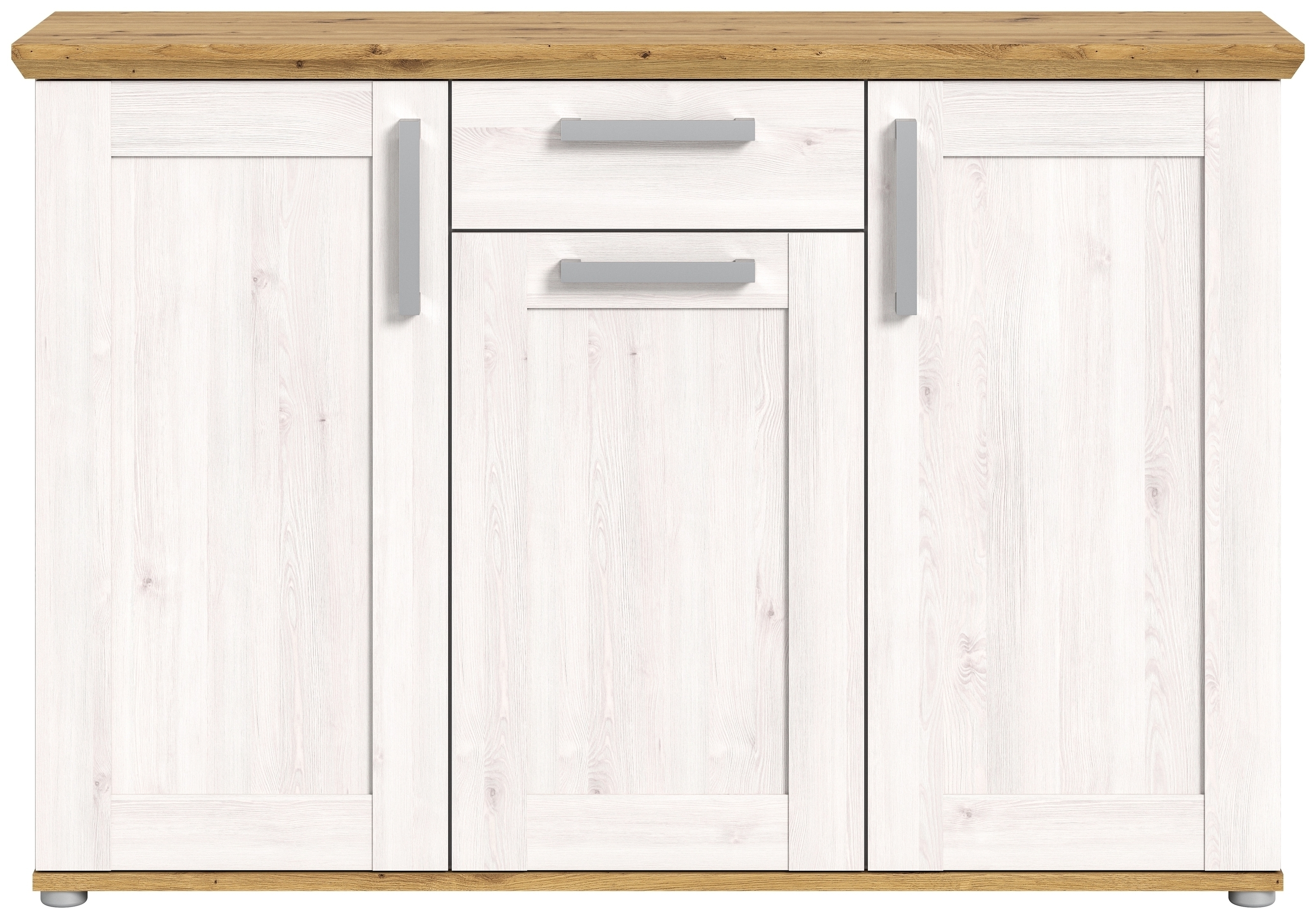 Die schlichten Linien, das Sibiu Lärche Dekor mit farblich abgesetztem Ober- und Unterboden in Artisan Eiche Nachbildung unterstreichen den modernen Landhaus-Look und sorgen für eine wohnliche Atmosphäre. Auf dem Lowboard findet Ihr TV seinen Platz, während das Highboard geschlossenen Stauraum und das Wandboard zusätzliche Ablagefläche bietet.